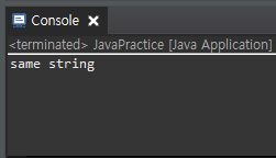System.out.println("same string");