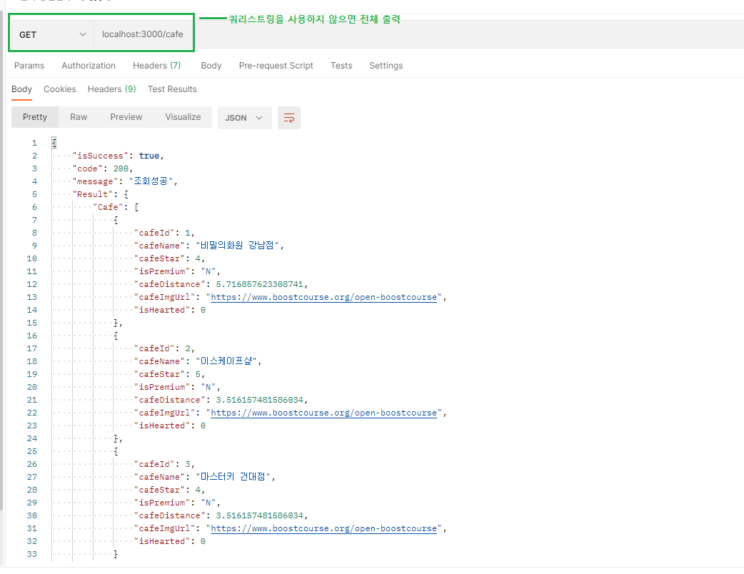 /cafe와 같이 요청을 하게 되면 모든 카페를 출력하고,