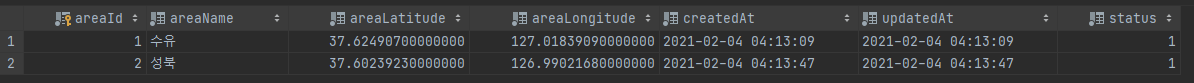 마지막으로 아래와 같은 Area라는 테이블도 있습니다.