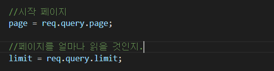 이를 통해 API를 설계 할때 page, limit값을 쿼리 스트링으로 받아서