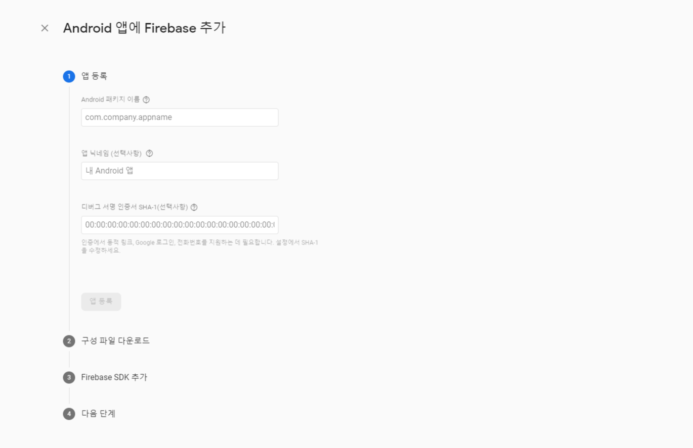 사용하고자 하는 앱에 firebase를 사이트에서 하라는 대로 추가해 줍시다.