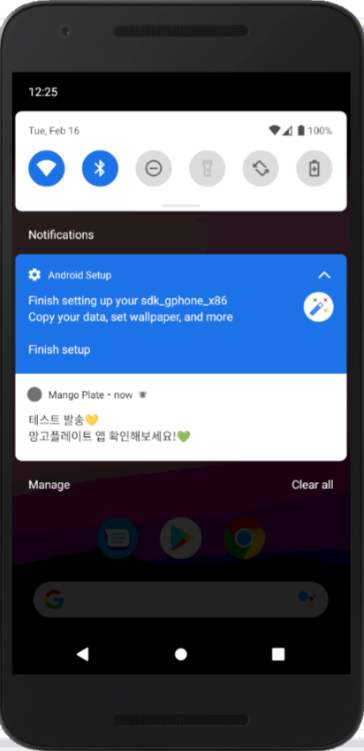 그 결과... 아래와 같이 성공적으로 푸시 알림이 오게 됩니다.!