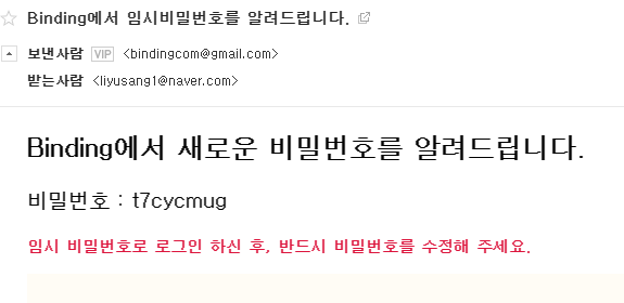 subject: 'Binding에서 임시비밀번호를 알려드립니다.',