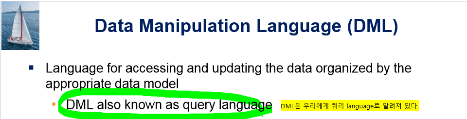DML은 우리에게 query language로 알려져 있습니다. SQL이 바로 DML입니다.