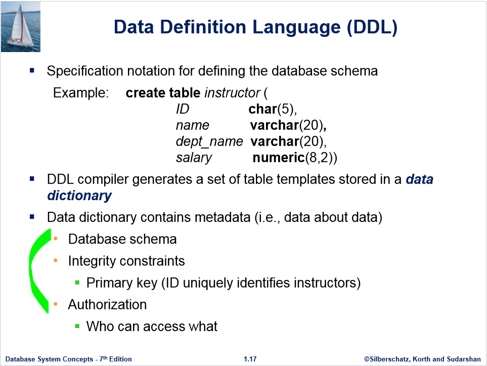 우리가 데이터베이스에 아래와 같은 명령어를 내리면 DDL 컴파일러가 Data Dictionary에 테이블을 생성하게 됩니다.