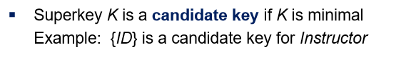 Super key가 가져야 되는 최소한의 값만 가진 것을 Candidate key라고 합니다.