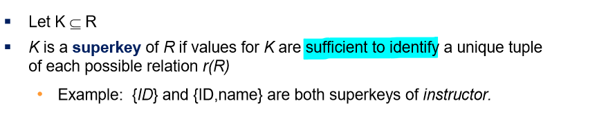 위 값들을 통해 테이블에서 저 값에 해당하는 특정한 튜플이 무엇인지 알 수 있기 때문에